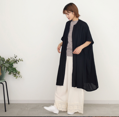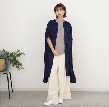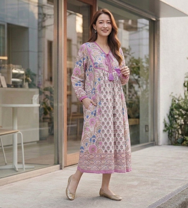 インド綿 ブロックプリント胸ステッチワンピース (2種類)