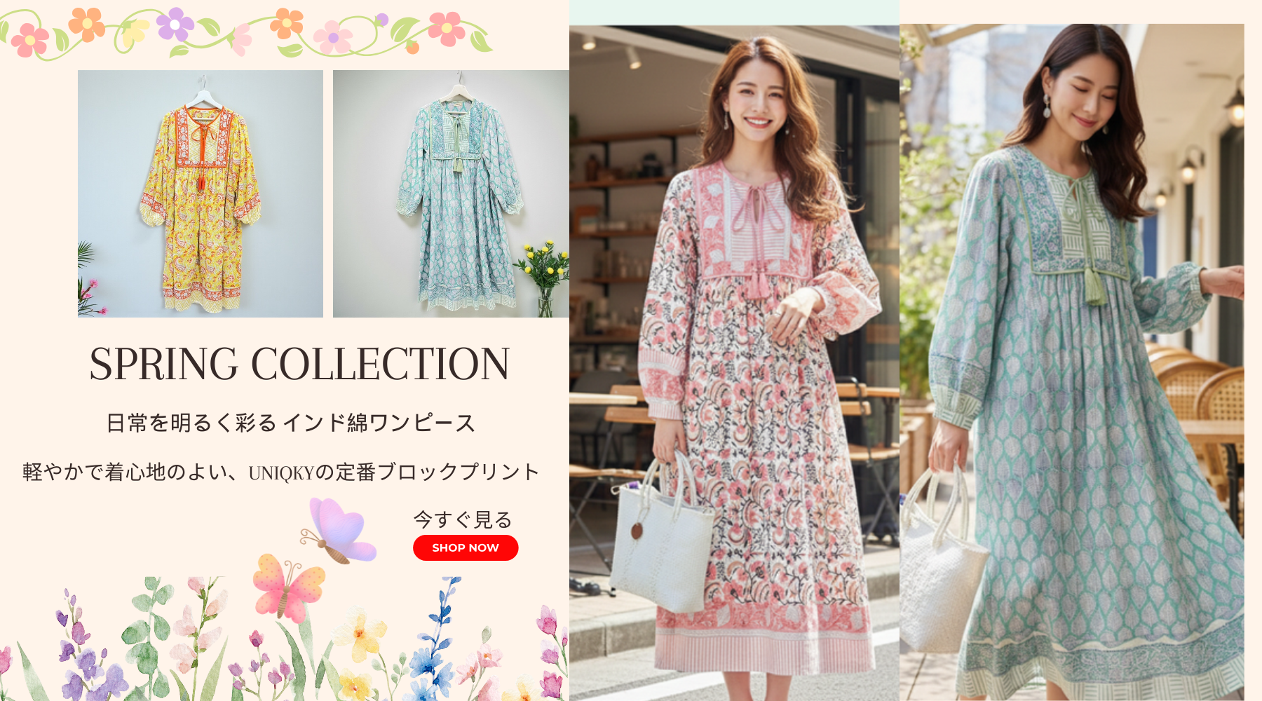 Preorder 2026 S/S インド綿ブロックプリントワンピース(予約販売 3月末頃発送予定)※クーポン割引はご利用いただけません