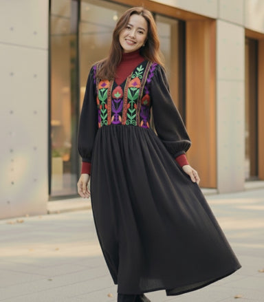 商品名 Cotton Embroidery Dress刺繍コットン・エスニックフラワーワンピース インド綿 色 Red , Pink サイズ/寸法 【Free size】着丈:128 cm 肩幅:40cm バスト周り:104cm そで丈 :57 cm 素...