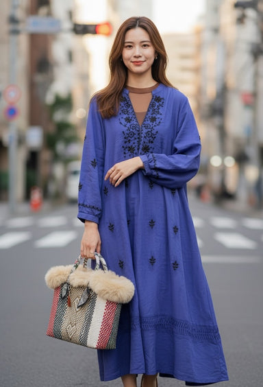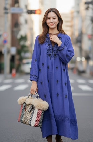 商品名 Cotton Embroidery Dress. インド綿 刺繍ワンピース 色 Blue ,Purple ,Black ,Brown サイズ/寸法 【Free size】着丈:125cm 肩幅:40cm バスト周り:104cm そで丈 :57 cm ...