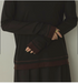 裾と袖口に入れた3本針ミシンのカラーは、バイカラーの生地色とあわせ、