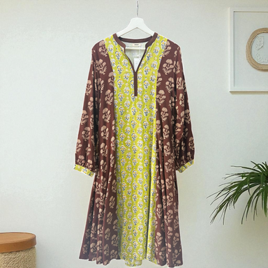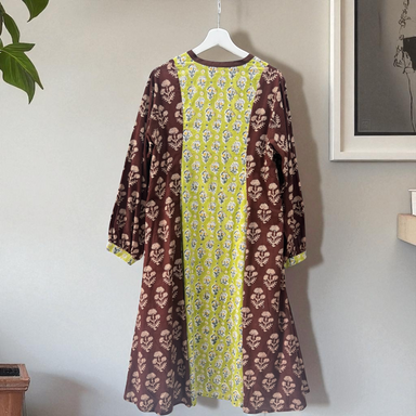 商品名 インドコットン切替プリントワンピース 色 Brown, Red ,Blue サイズ/寸法 【Free size】着丈:125cm 肩幅:42 cm バスト周り:100cm そで丈 :62cm 素材/材質 綿 100% 生産地 インド...